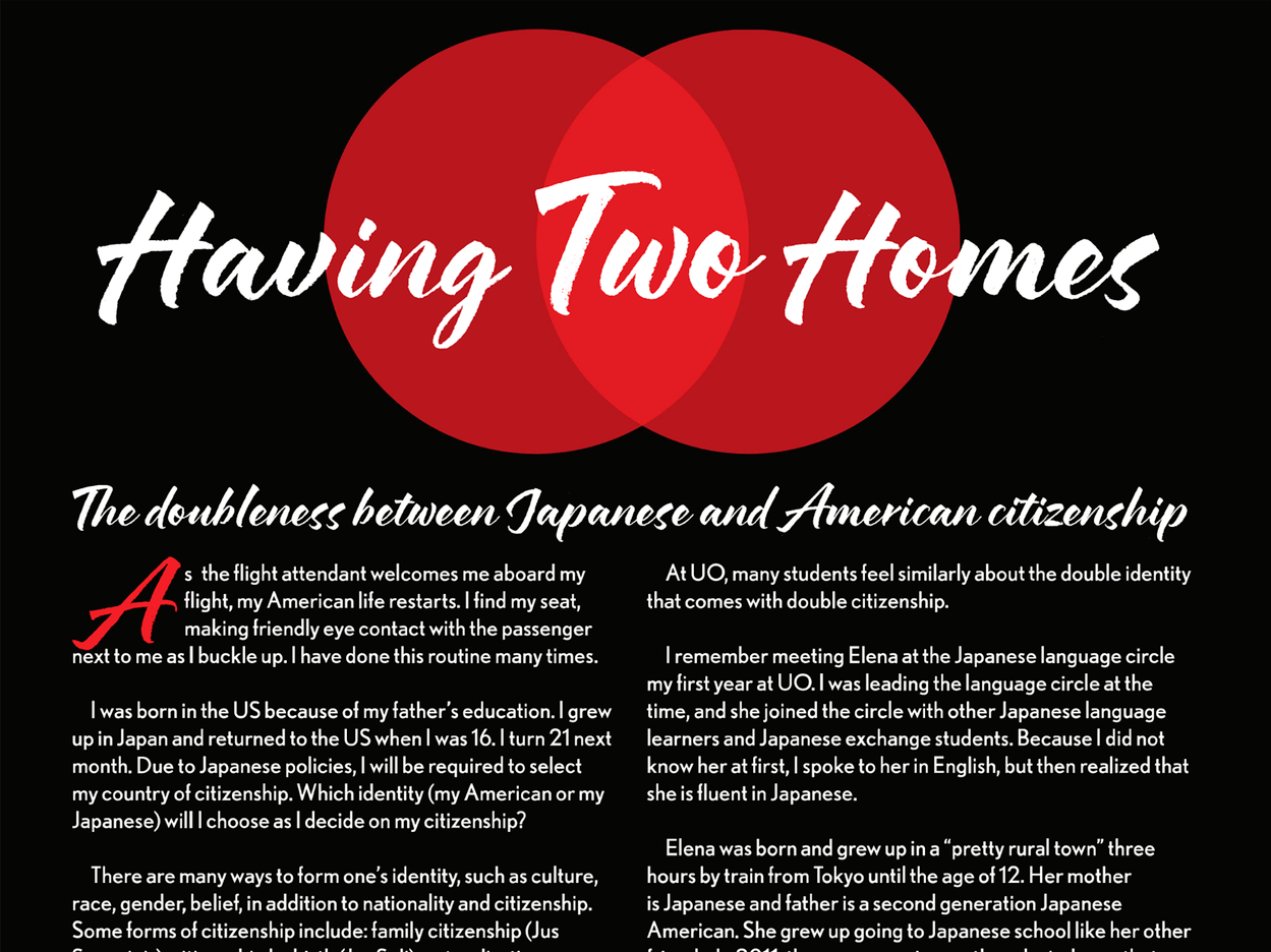 A dynamic magazine spread exploring dual citizenship.